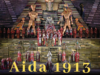 LA TRAMA: (ATTO 1°) Gli etiopi stanno per attaccare Tebe e il gran sacerdote Ramfis annuncia che gli dei hanno indicato il guerriero che guiderà gli eserciti egiziani contro gli invasori; Radames spera d’essere il prescelto e di coprirsi di gloria per amore di Aida. Arrivano Amneris e Aida, che la principessa egizia sospetta essere innamorata di Radames; segue il faraone, venuto ad annunciare che Radames è stato scelto per comandare l’esercito. Aida è combattuta tra l’amore per Radames e il sentimento che la lega al suo popolo; poco dopo, nel tempio di Vulcano, si svolgono le cerimonie di propiziazione e preghiera, e Radames riceve la spada consacrata. (ATTO 2°) Amneris per carpire i sentimenti di Aida, le dà il falso annuncio della morte di Radames; l’etiope grida il suo dolore e Amneris, scopertala rivale, le svela l’inganno giurando vendetta. Radames ha sconfitto gli etiopi e l’esercito egiziano sfila trionfale davanti al re, che lo incorona. Il generale intercede a favore dei prigionieri, tra cui si trova Amonasro, padre di Aida. Il re accoglie la richiesta, ma accontentando i sacerdoti, decide che Aida e il padre restino come ostaggi. (ATTO 3°) Radames non può rifiutare le nozze con la figlia del faraone e Amneris, alla vigilia della cerimonia, si reca a pregare al tempio di Iside. Amonasro, scoperto l’amore tra sua figlia e Radames, le impone di farsi i piani di guerra degli egizi e si nasconde per spiare il loro colloquio, durante il quale Radames svela ad Aida che gli etiopi saranno attaccati al passo di Napata. Amonasro esce esultante dal nascondiglio e Radames, sbigottito, si rende conto di avere tradito il proprio paese. Sopraggiunge Amneris con Ramfis: Amonasro fa per aggredirla ma Radames la protegge e si consegna al gran sacerdote per espiare il suo involontario tradimento. (ATTO 4°) Amneris visita Radames e lo esorta a rinunciare ad Aida in cambio della vita. Ma Radames, incapace di vivere senza Aida, sceglie la morte: condotto dinnanzi ai sacerdoti viene condannato ad essere sepolto vivo. La scena cambia e si sdoppia: sopra c`è il tempio di Vulcano e sotto la cripta che sarà la tomba di Radames. Il giovane viene condotto nel sepolcro e l’apertura chiusa con una grossa pietra; dal buio appare Aida che lo ha preceduto nel sotterraneo per morire con lui. Serenamente affrontano assieme la morte, mentre nel tempio Amneris leva il suo lamento.