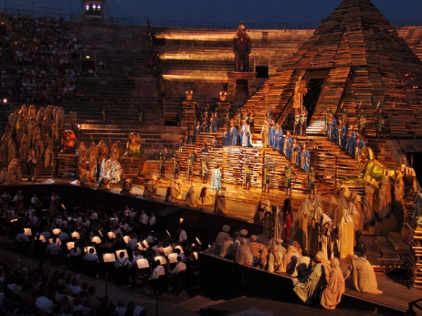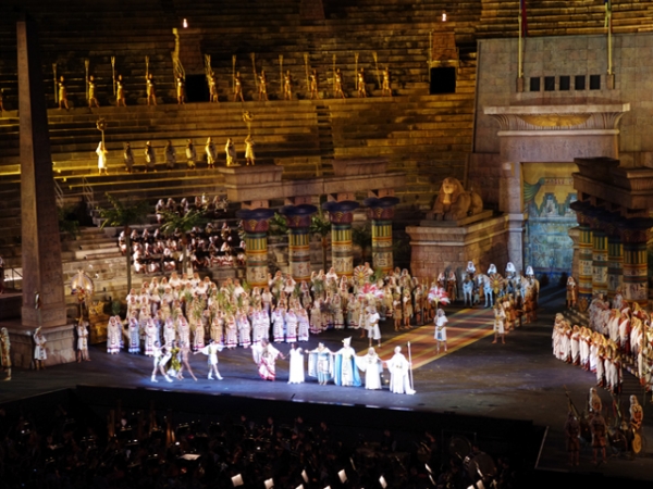 ore 21.00: questa sera, nell’ambito del festival areniano, la Fondazione Arena di Verona, mette in scena AIDA, opera lirica in quattro atti di Giuseppe Verdi, tratta da un libretto di Antonio Ghislanzoni. Rappresentazione con l’Orchestra, il Coro e i ballerini della Fondazione Arena. Edizione storica con la regia di Gianfranco de Bosio, ispirata al primo allestimento del 1913 di Ettore Fagiuoli. Commissionata dal viceré d’Egitto per festeggiare l’apertura del canale di Suez, l’opera fu rappresentata per la prima volta al Cairo nel 1871 ed ebbe subito un grande successo. La vicenda si svolge nell’antico Egitto e racconta la guerra tra il Faraone e Amonasro, re d’Etiopia, la cui figlia Aida è prigioniera degli egiziani e schiava di Amneris, figlia del Faraone; entrambe le donne sono innamorate del giovane Radames.