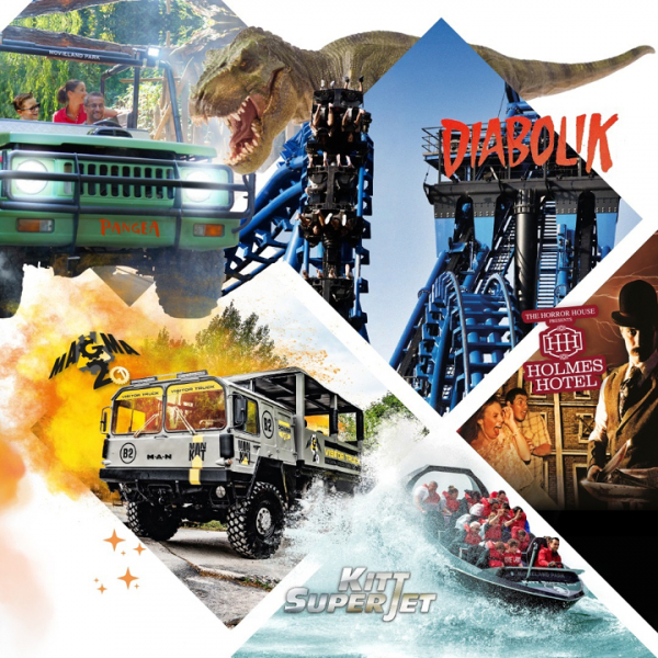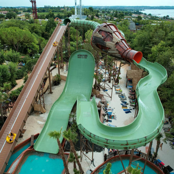 La struttura, nata nel 1965 come sala da ballo con annessi impianti sportivi, si evolve durante gli anni '80 assumendo la forma di acquapark con scivoli sempre più eleborati, piscine a tema, spiaggie e alcuni servizi di ristorazione. Negli anni '90 arrivano il Rock Star Restaurant, con cucina statunitense e arredamento anni cinquanta, e il Medieval Times, la ricostruzione di un castello in cui cenare assistendo ad un torneo medievale. Nel terzo millennio la struttura viene ampliata con l’apertura di Movieland, un grande parco divertimenti dedicato al mondo del cinema hollywoodiano, che riprende l'idea degli Universal Studios americani e la adatta ai gusti del pubblico europeo. Ultimo arrivato il Safari Pizza, la pizzeria per famiglie tematizzata a tema giungla. Oggi il polo occupa una superficie complessiva di oltre 200mila metri quadrati ed è uno dei parchi di divertimento più frequentati e completi in Italia. Aperto nel 2002 il Movieland The Hollywood Park è un parco divertimenti con oltre una ventina di attrazioni meccaniche, ristoranti a tema, negozi e spettacoli nel quale si possono vivere differenti set cinematografici che portano dall’azione all’horror, al puro divertimento. Tra le sue attrazioni più apprezzate ci sono Disaster e K6. Il primo è un tour a bordo di autobus attraverso i set dei blockbuster cinematografici mentre il secondo è un action ispirato al film U-571 che simula l'attacco ad un sottomarino tedesco durante la 2° Guerra Mondiale