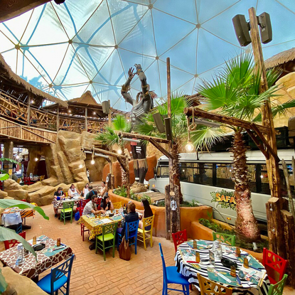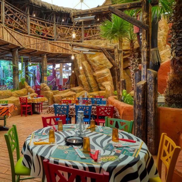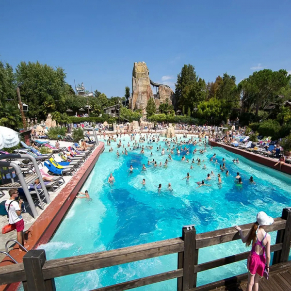 Caneva Aquapark è un parco acquatico che dispone di svariati scivoli, piscina a onde, lagune, area bimbi con veliero pirata, punti ristoro e shop inseriti in un contesto tropicale molto scenografico, che ricorda quella del Disney Typhoon Lagoon in Florida. La sabbia bianca che contraddistingue buona parte delle aree calpestabili, il grande vulcano che erutta fiamme ogni ora, la complessità degli scivoli e la completezza dei servizi, lo rendono uno dei più interessanti parchi acquatici della penisola. Il Rock Star è un grande ristorante arredato con cimeli ed uno stile che ricorda i locali americani degli anni '50; propone una buona scelta di piatti italiani ed internazionali e di bevande senza limiti di quantità con la formula “all you can drink and eat". Il Medieval Times è un ristorante a tema per famiglie in cui si può cenare assistendo ad uno spettacolo con cavalieri, scudieri e alfieri che si sfidano in giochi di abilità a cavallo, giostre medievali e furiosi combattimenti corpo a corpo per conquistare la mano della bellissima principessa. Safari Pizza è una pizzeria per famiglie completamente arredata a tema giungla, con giro pizza, spettacoli e area giochi per bambini
