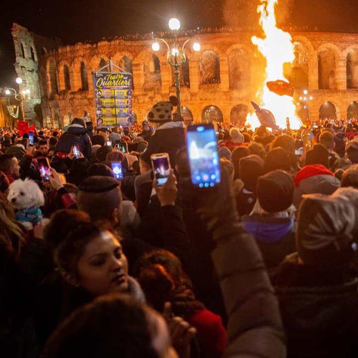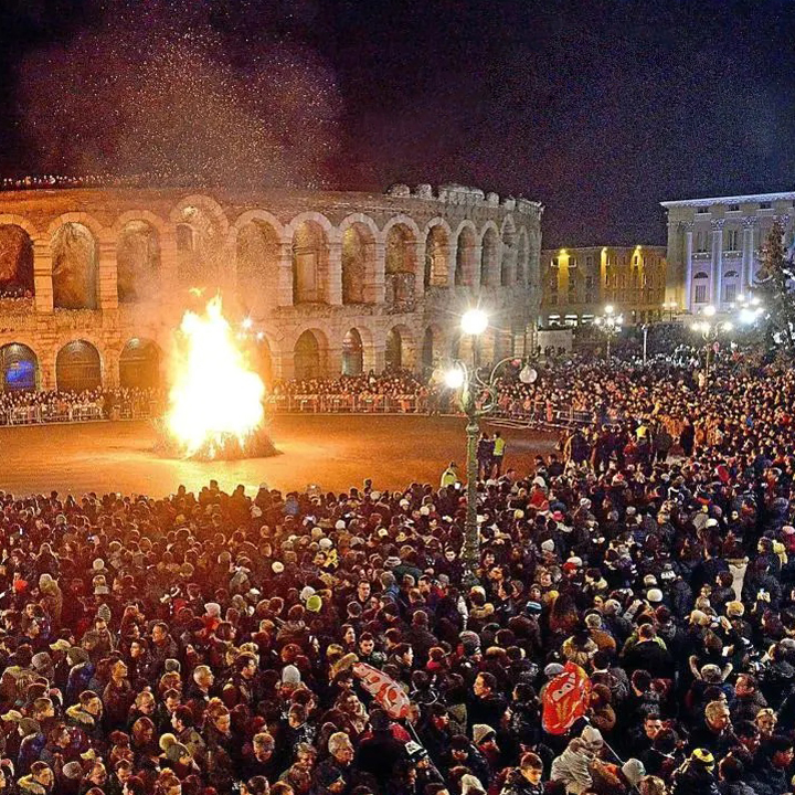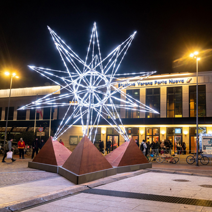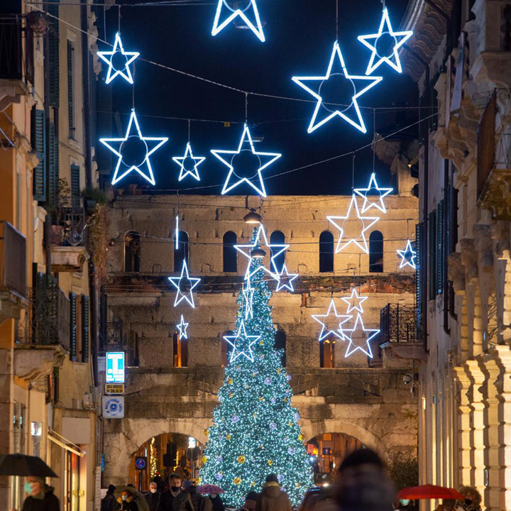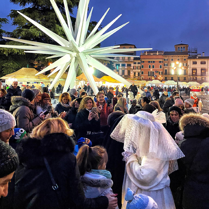 La mostra è accompagnata dalla grande Stella Cometa, una scultura in acciaio alta 70 metri che congiunge l'Arena a Piazza Bra, con un gesto architettonico di straordinaria eleganza. Piazza in cui dal 10 al 13 dicembre c’è la secolare FIERA DI SANTA LUCIA con centinaia di bancarelle da tutta Italia e migliaia di visitatori, che acquistano giocattoli, abbigliamento, prodotti dell’artigianato locale, specialità gastronomiche, mercanzie d’ogni sorta e tantissimi dolci. La terza domenica di dicembre nelle vie del centro si svolge la CHRISTMAS RUN una corsa podistica con i runner vestiti da Babbo Natale. Ricchi pranzi di Natale e cenoni della vigilia sono organizzati nei RISTORANTI E TRATTORIE della città, con menu tipici e prodotti del territorio. Nei teatri ci sono concerti di musica classica, serate di cabaret, spettacoli per famiglie e di prosa con le migliori compagnie nazionali. La notte di CAPODANNO c’è una grande festa in piazza organizzata dal Comune; veglioni nelle discoteche e nei locali della movida, cenoni nei ristoranti, party esclusivi nelle ville e concerti di gala nei teatri. Il 6 gennaio l’appuntamento più partecipato è il BRUSA LA VECIA il rogo della befana che scaccia le sventure dell’anno passato e propizia quello nuovo: un grande fantoccio alto una decina di metri viene bruciato seguendo una tradizione che discende da antichi riti preromani