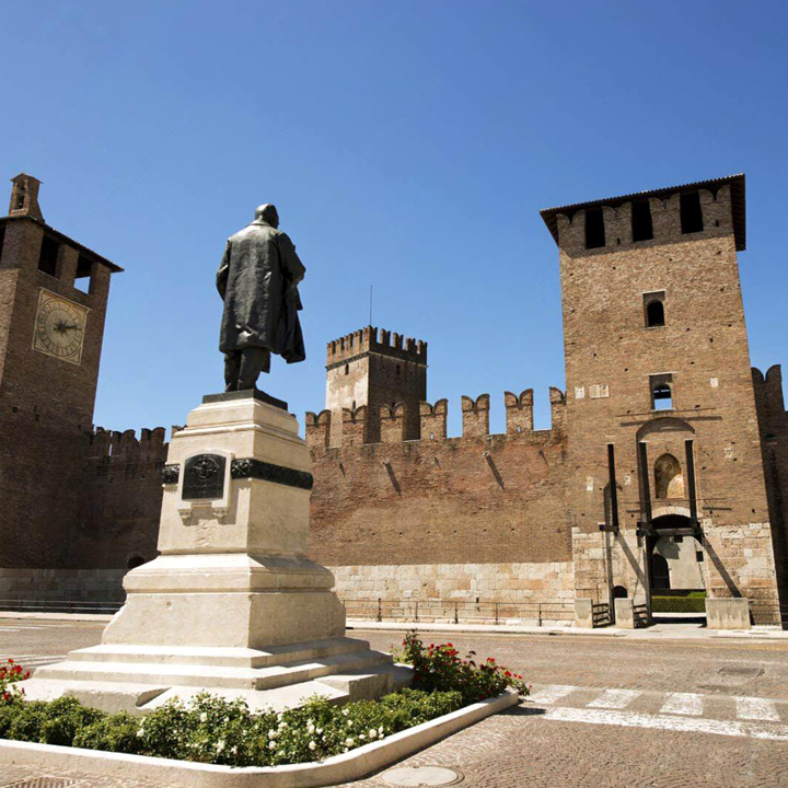 Per visitare Verona in un giorno partiamo da Piazza Bra; dalla Fontana delle Alpi che celebra il gemellaggio tra Verona e Monaco di Baviera. I veronesi la chiamano strucalimoni per la sua forma singolare che ricorda uno spremiagrumi. Di fronte c'è PALAZZO BARBIERI sede dell'amministrazione comunale. E' un imponente edificio in stile neoclassico; ispirato agli antichi templi romani si presenta con una maestosità che lascia sbalorditi, offrendo una visione globale di tutta la facciata. Sulla destra la GRAN GUARDIA un monumentale palazzo di quasi 90 metri nato come accademia militare che oggi ospita mostre e congressi. Sull'altro lato c'è il Liston, un ampio marciapiede in pietra rosa che segue l'andamento curvilineo della piazza, su cui si affacciano eleganti palazzi che ospitano bar e ristoranti, sempre affollati da veronesi e turisti. Su tutto domina L'ARENA il grande anfiteatro eretto nel I secolo e visitabile tutto l’anno; in estate ospita una grande stagione lirica e concerti dei maggiori artisti mondiali; in inverno una rassegna internazionale di presepi. Lasciata la Piazza imbocchiamo via Roma, strada di elegante passeggio con negozi e caffè. Sulla sinistra un possente colonnato protegge l’ingresso del TEATRO FILARMONICO il principale teatro di Verona. E’ una sorta di sede invernale dell’Arena, che da ottobre a maggio propone un ricco cartellone di spettacoli sinfonici, lirici e di balletto con l'Orchestra e il Corpo di Ballo della Fondazione Arena. In fondo alla strada, davanti alla statua di Cavour, si erge CASTELVECCHIO dimora dei principi Scaligeri che nel medioevo governarono la città. Una fortezza imponente che colpisce per l'aspetto autorevole e militare. Ospita una delle maggiori raccolte d'arte in Italia, che dai reperti paleocristiani arriva fino ai dipinti del '700, includendo gioielli, sculture e armi. Sulla sinistra c’è L'ARCO DEI GAVI. Un arco celebrativo dedicato ad una famiglia di privati cittadini risalente al I secolo, realizzato con blocchi di pietra bianca disposti in filari